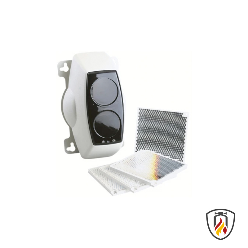 Detector Linear de humos adicional de 5 a 50 m. Para conectar a un Programador Existente. Suministrado con 1 espejo. Pueden conectarse hasta 2 unidades a un Programador central. Puede aumentarse la distancia hasta 100m.